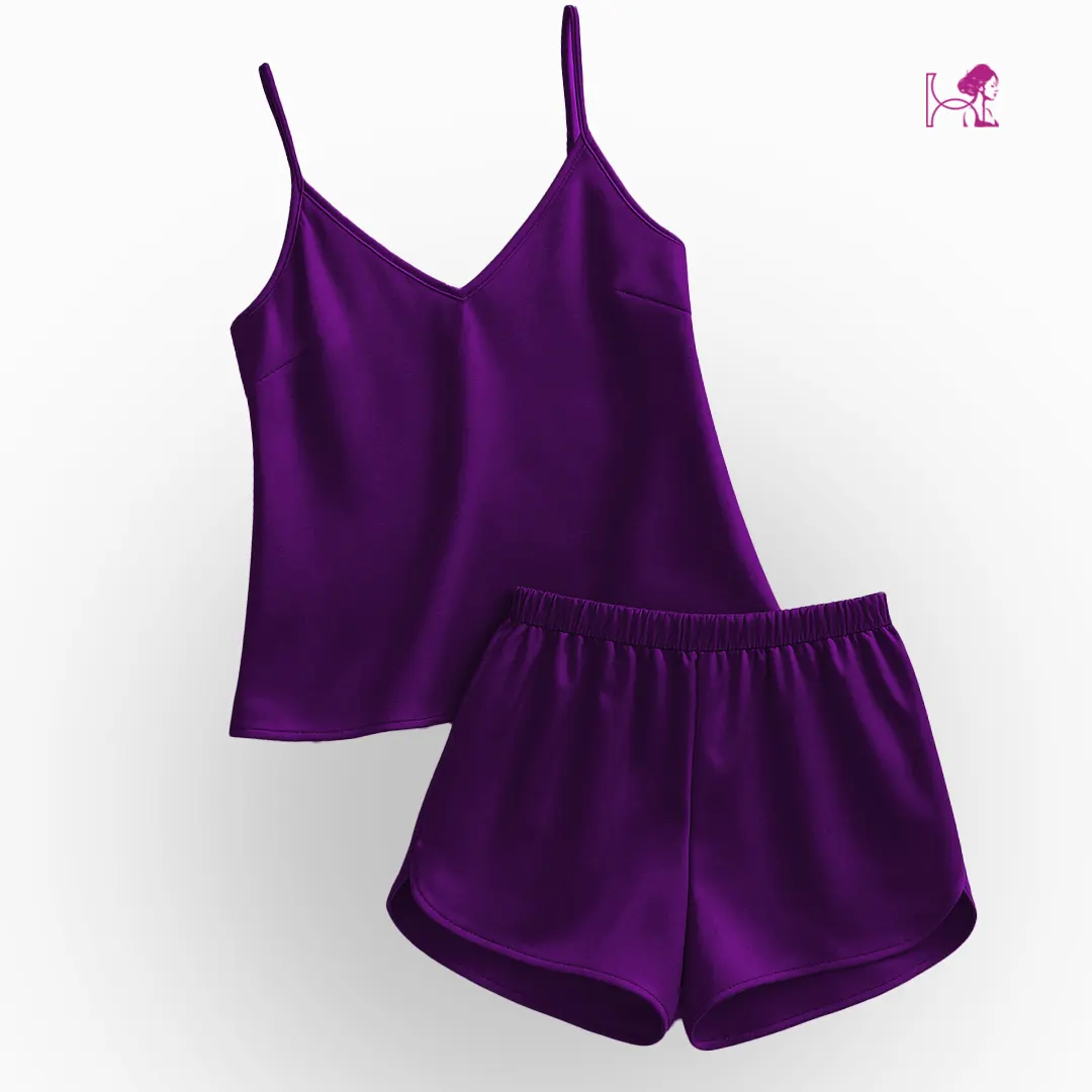 Brinjal Depth with Effortless Ease in a Brinjal Silk Cami and Shorts Set