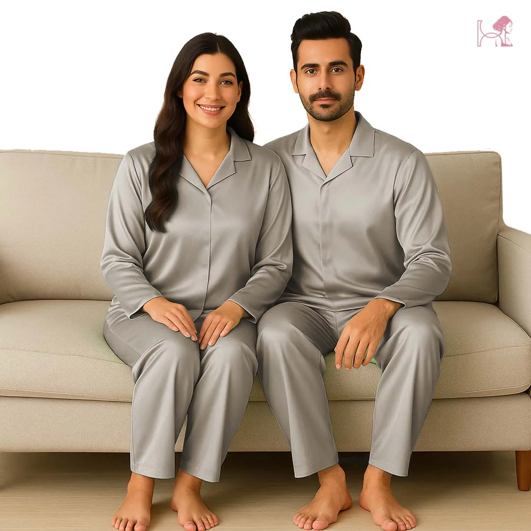Grey Couple Silk Pajama Set in Pakistan – Sophisticated, Comfortable & Stylish
