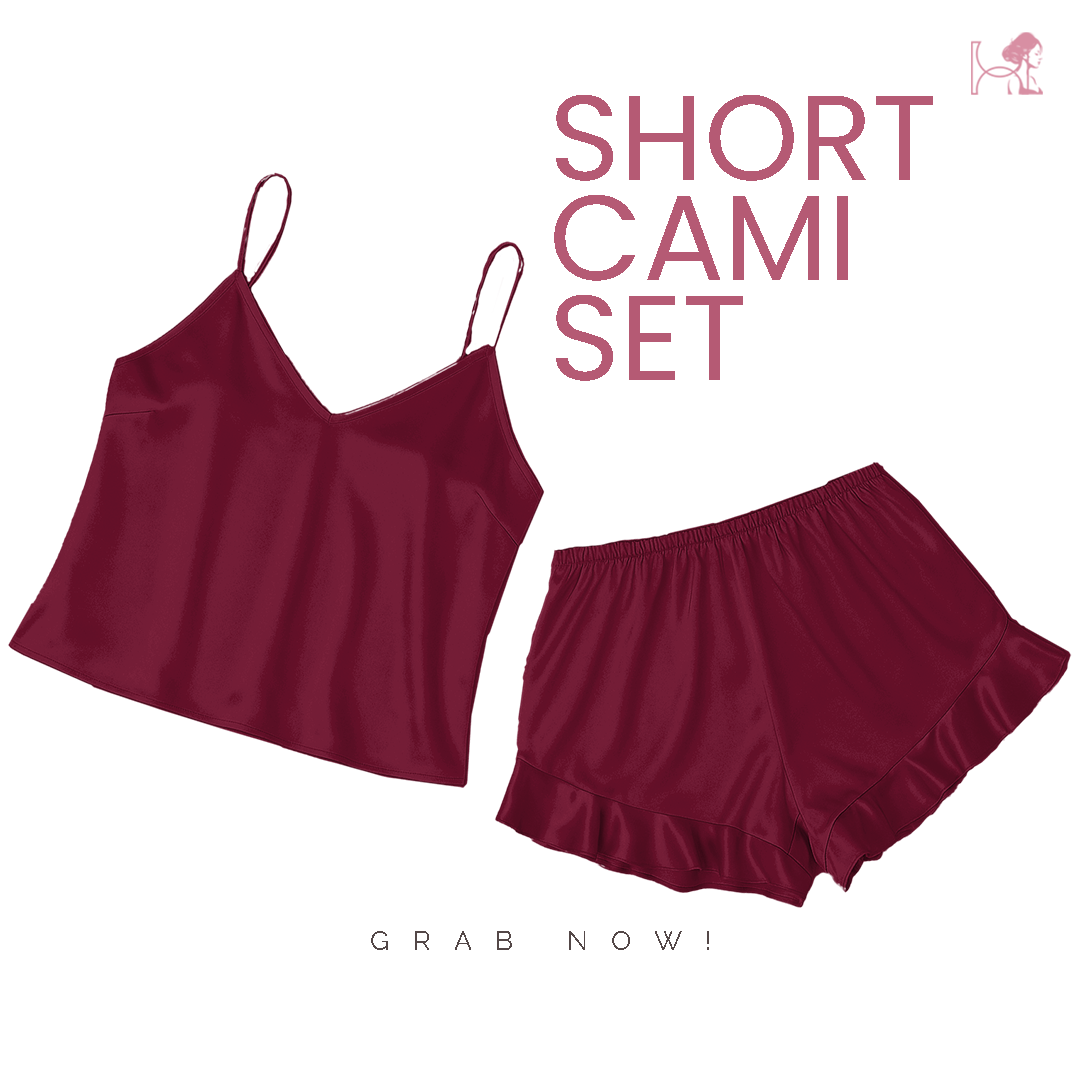 Maroon Warmth and Effortless Ease in a Maroon Silk Camisole and Shorts Set