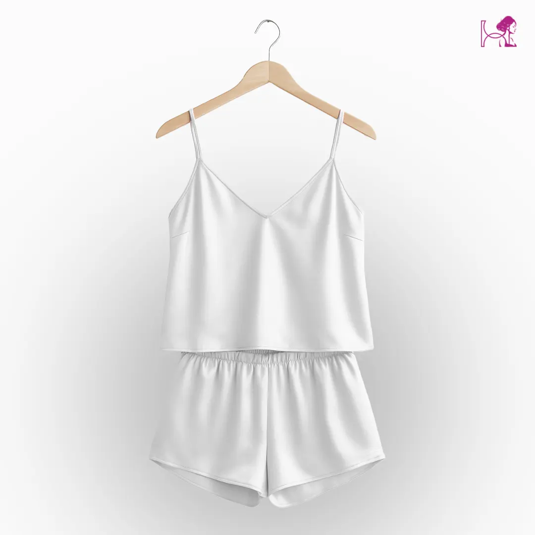 The White Silk Cami and Short Set also makes a beautiful bridal nightwear choice, offering understated allure without sacrificing comfort. For those seeking extended coverage while maintaining the same silk luxury, our long silk camisole’s provide an equally stylish alternative. With so many styling opportunities, this set effortlessly transitions from loungewear to statement wear, making it a versatile addition to your wardrobe.